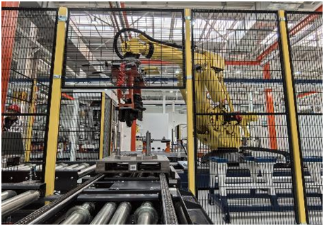 裝配線的物料上、下線由立體倉庫AGV自動配送至產線的物流線進行自動對接,采用了18套機器人以及視覺自動識別定位、防錯進行物料抓取裝配,實現自動上料、信息掃碼裝配及檢測;裝配過程數據采集、物料條碼信息、設備過程控制等采用中控系統進行中央控制,并與工廠MES系統、物料信息系統聯網控制,實現智能化工廠。