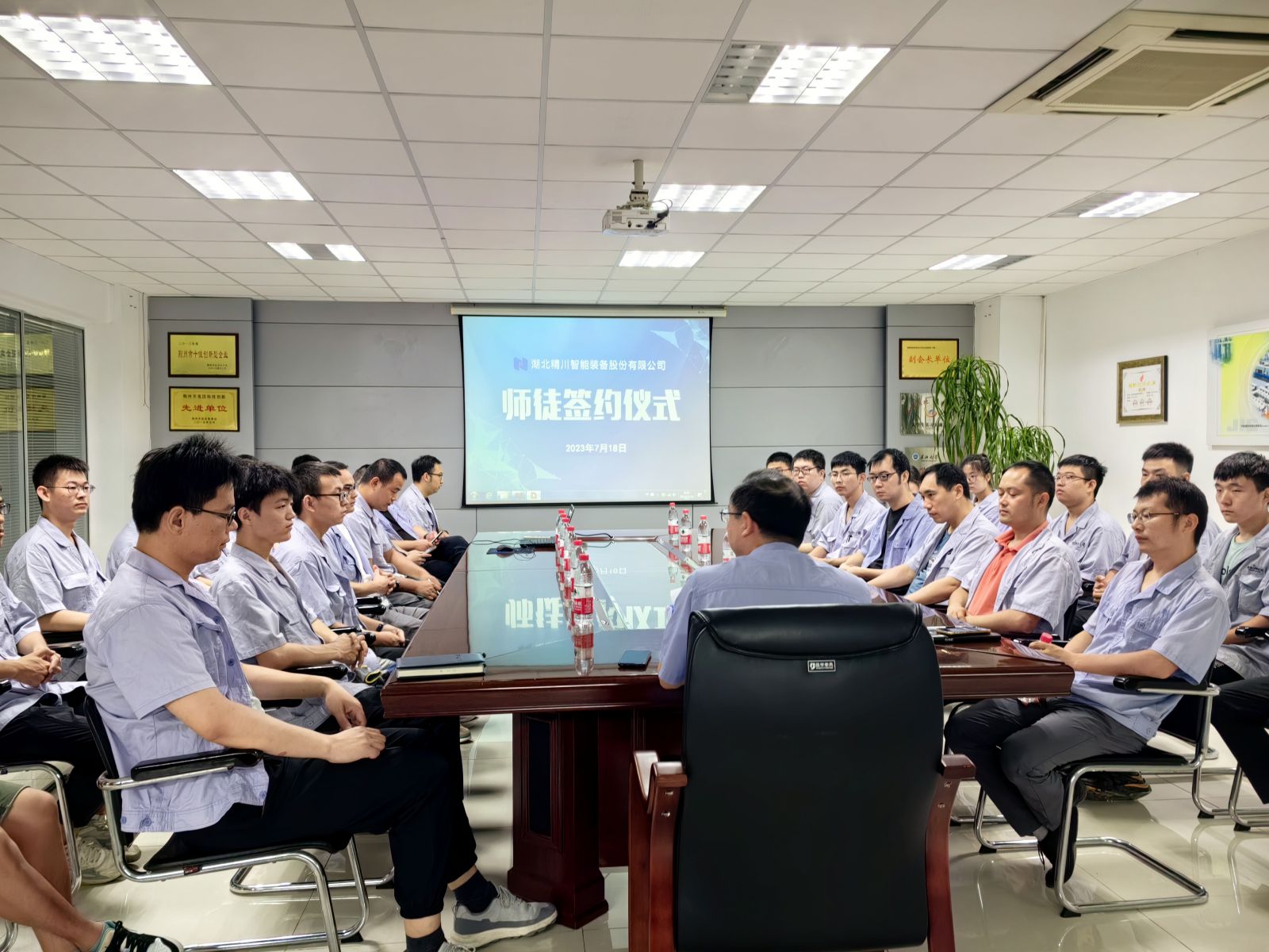 為加快畢業生的成長步伐,全面提高員工隊伍整體素質和技能水平,并且發揮老員工技術和經驗的“傳、幫、帶”作用,使應屆畢業生盡快適應工作崗位的要求,7月18日,精川智能公司舉行了2023屆畢業生迎新見面會暨 “師徒簽約儀式” !